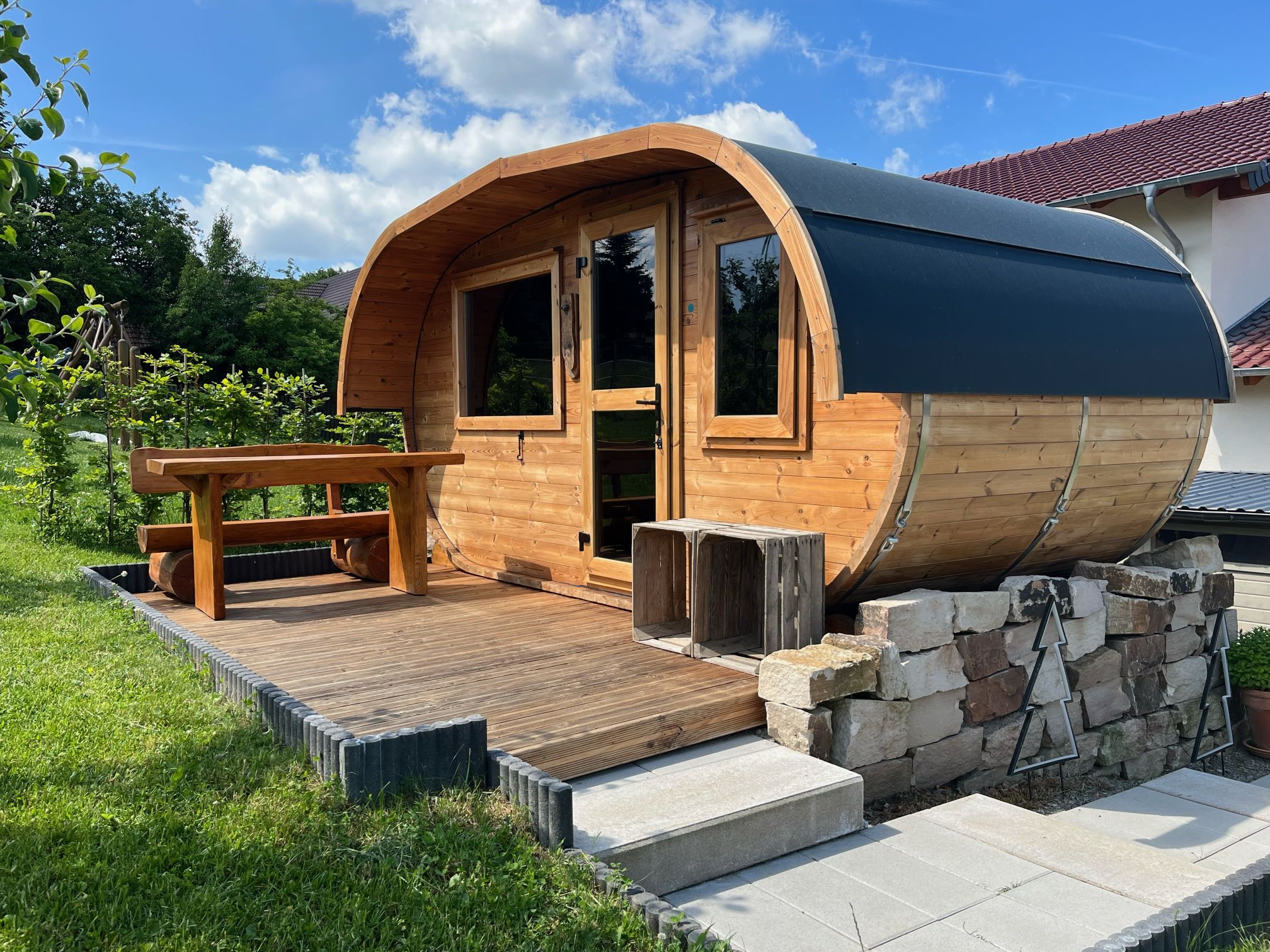 Mit der Holzfasssauna wird Wellness zu Hause möglich.