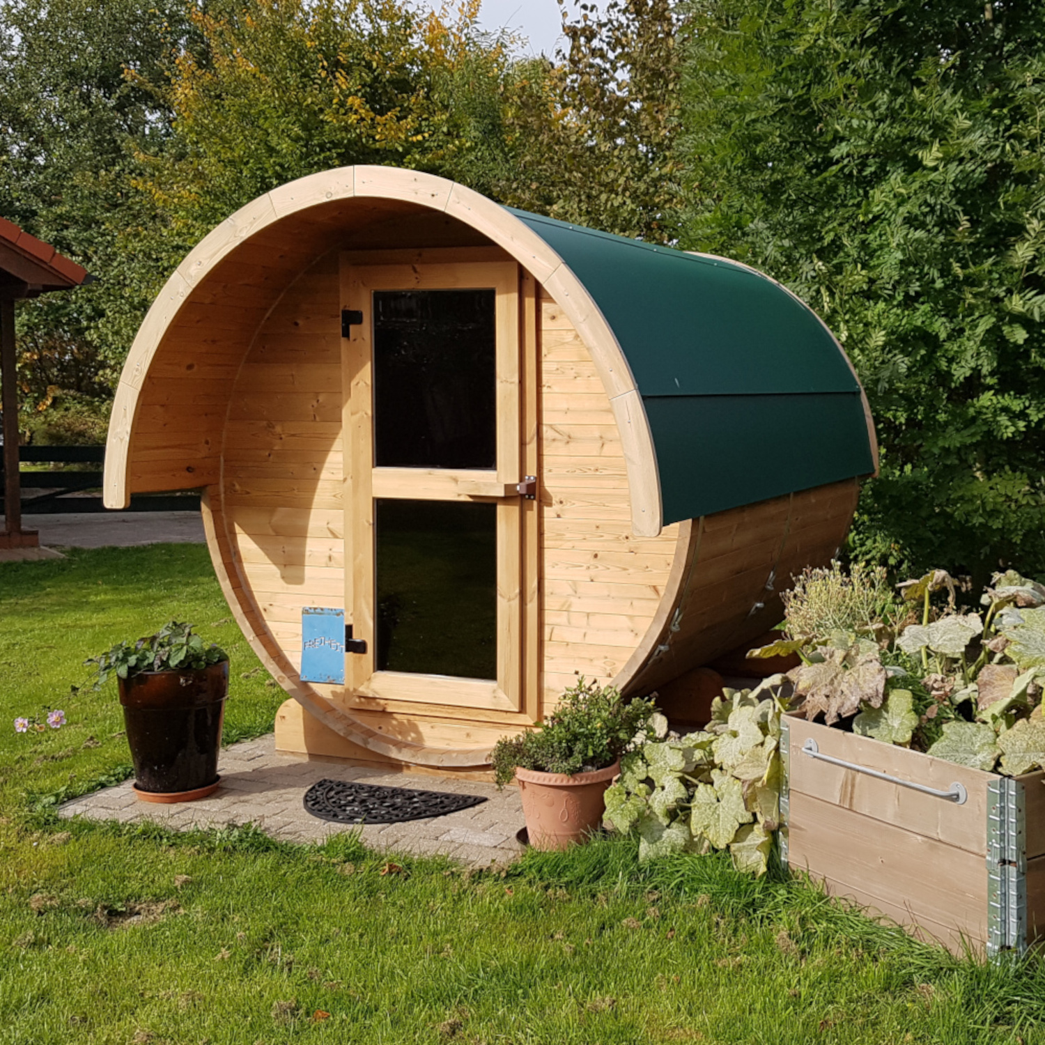 Ob im Garten, auf der Terrasse hinter dem Haus oder auf der Dachterrasse – unsere Fass-Sauna kommt mit minimaler Standfläche aus. Sie bietet einen faszinierenden Ort der Entspannung. Das durchdachte Design überzeugt durch ein geringes Raumvolumen, das ein besonders effizientes Aufheizen ermöglicht. Dabei kann ein elektrischer oder ein mit Holz befeuerter Saunaofen verwendet werden. Ein Stromanschluss ist daher nicht zwingend nötig.